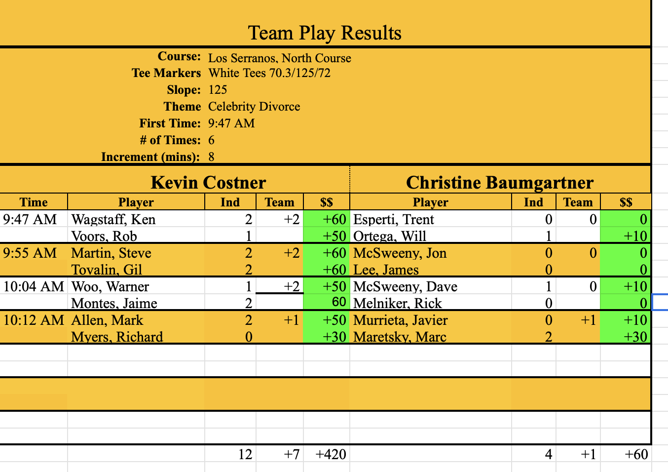 at Los Serranos - unlike divorce court! I have attached the results and