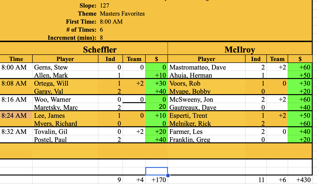 four-ball, and for the McIlroy side). Let me know if you have any questions