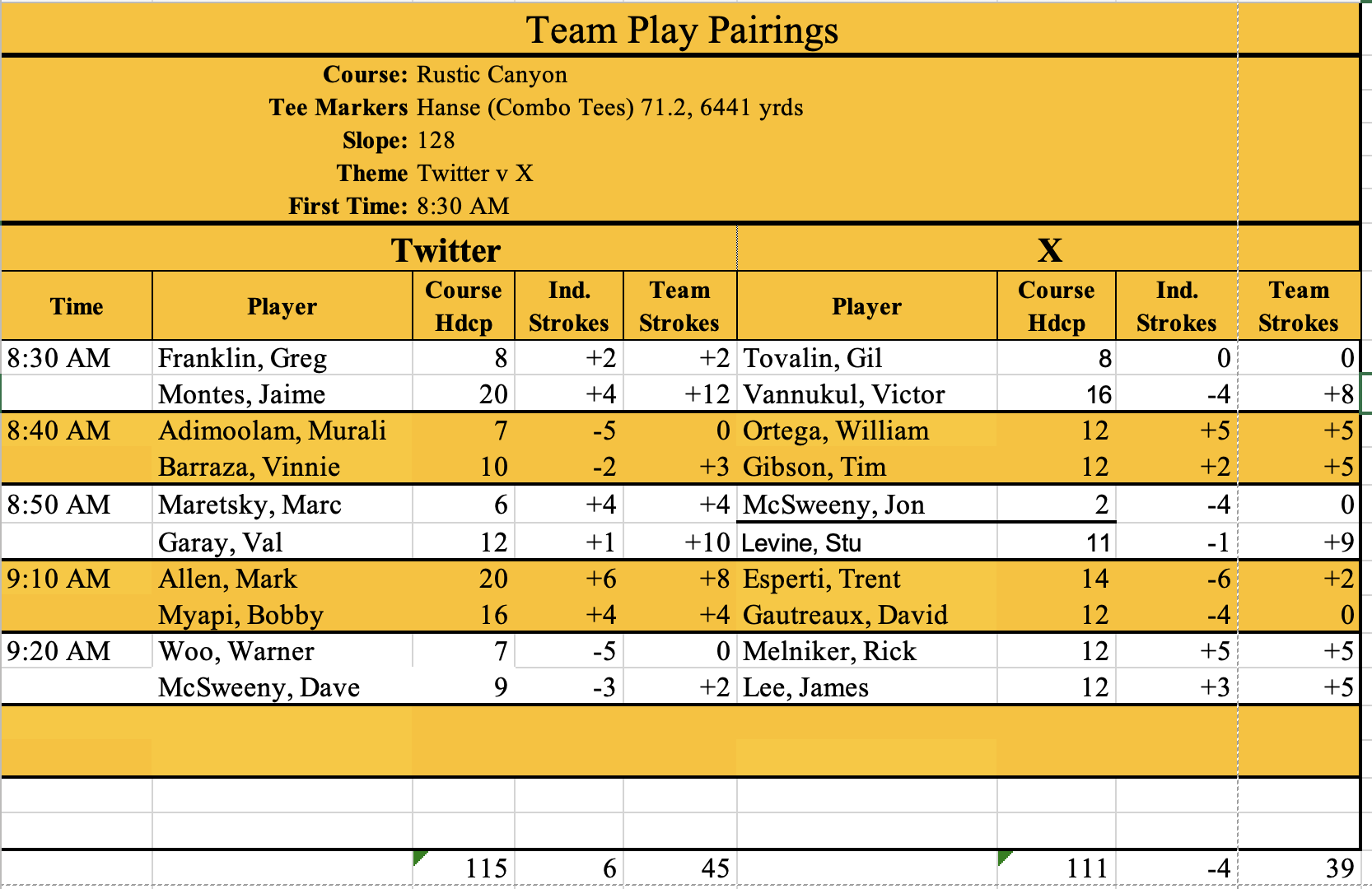 Sean Trundy has an injury and Jaime Montes will take his spot. Attached is the updated tee sheet.