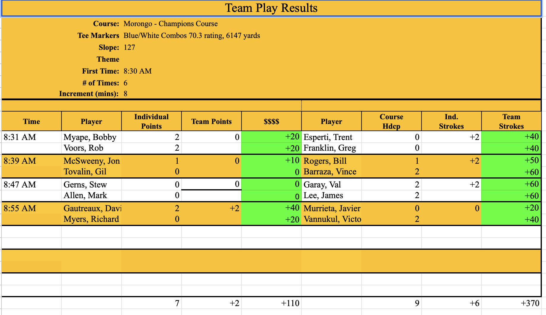 Congratulations to the "Right Side" for winning today's match at Morongo by