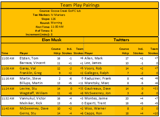 Jaime Montes is replacing Tom Lynch at @11:32A time. Attached are the updated pairings.